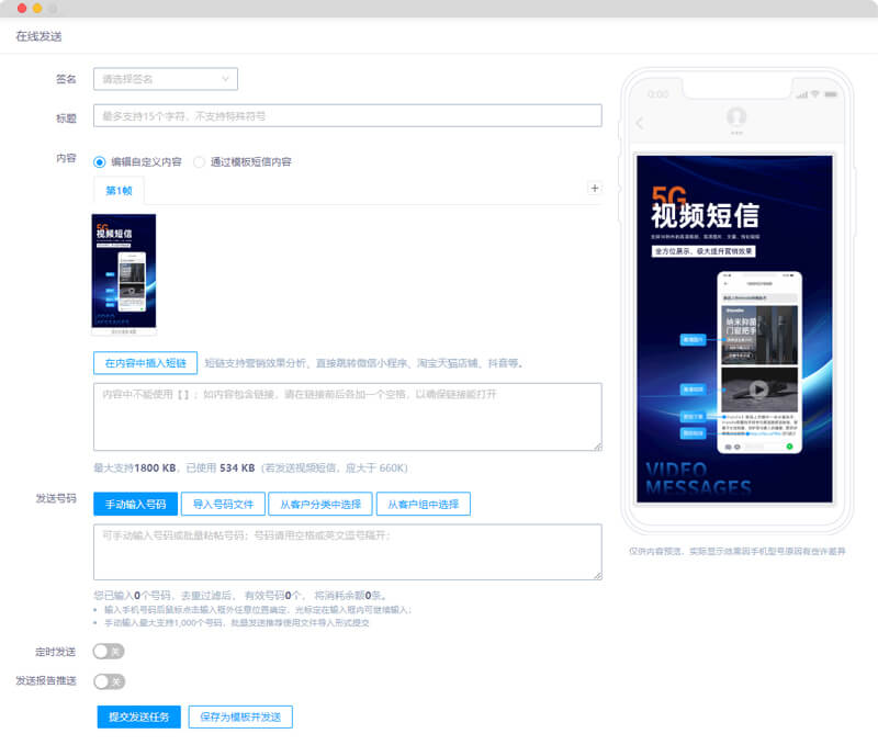 高并發支持,專業團隊實時監控,確保視頻短信消息高速發送
